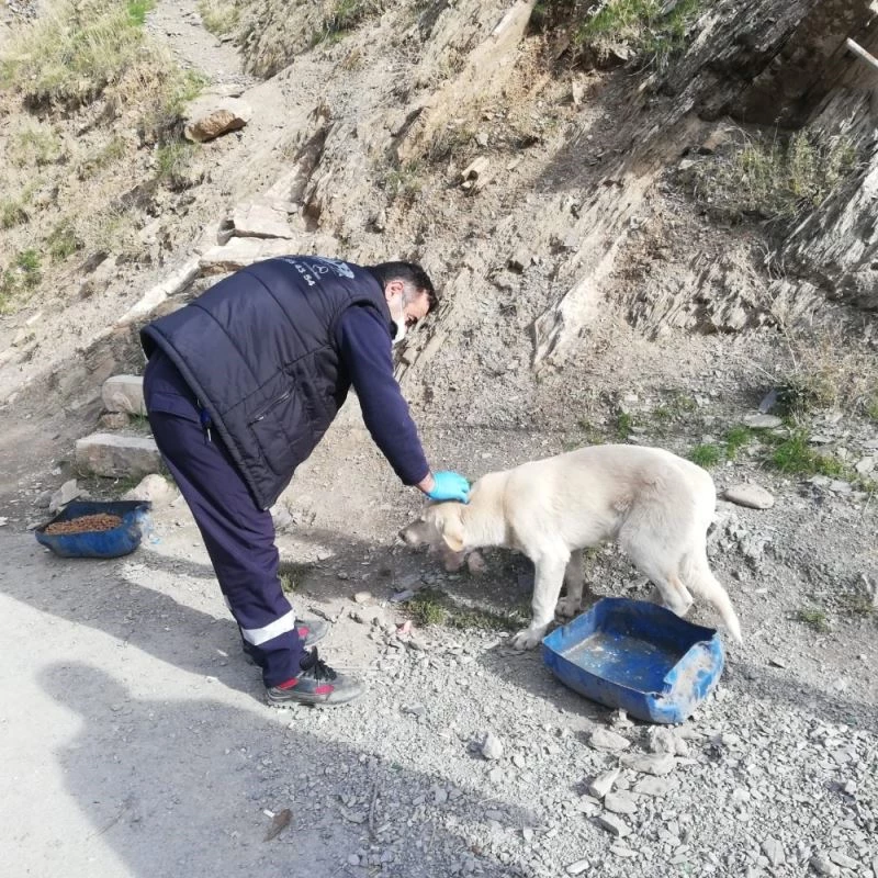 Hakkari Belediyesi iki günlük sokağa çıkma yasağında da can dostları yalnız bırakmıyor. Veteriner ekipleri sokakta yaşayan hayvanlara kentin dört bir yanında yiyecek ve mama bıraktı.