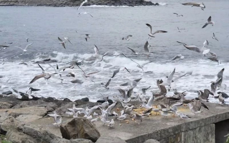Trabzon’un Ortahisar ilçesinde Vefa Sosyal Destek Grubu, sokağa çıkma kısıtlamasında kuşları yalnız bırakmadı, sahile yem bıraktı.