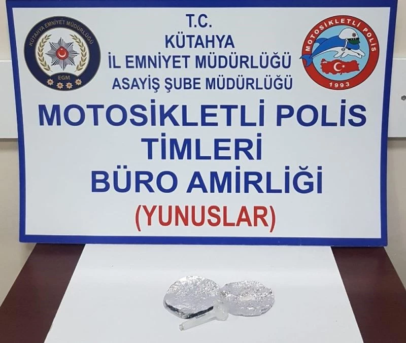 Kütahya’da sokağa çıkma yasağı esnasında durdurulan şüpheli aracın içerisinde bulunan iki şüpheliden birinin üzerinde bir miktar metamfetamin ve payp ele geçirildi.