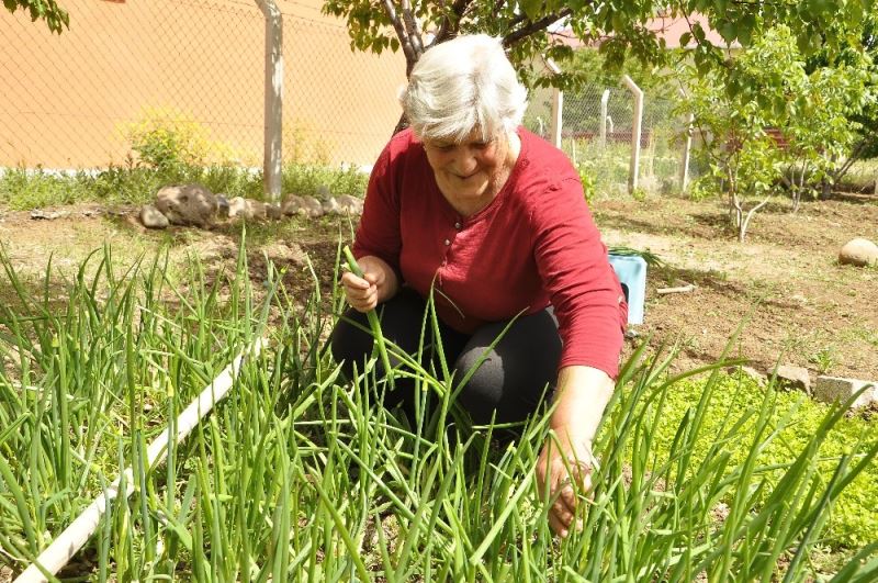 Malatya’da yaşlı bir kadın, yeni tip korona virüs nedeniyle sokağa çıkamayınca evinin bahçesinde sebze yetiştirmeye başladı.