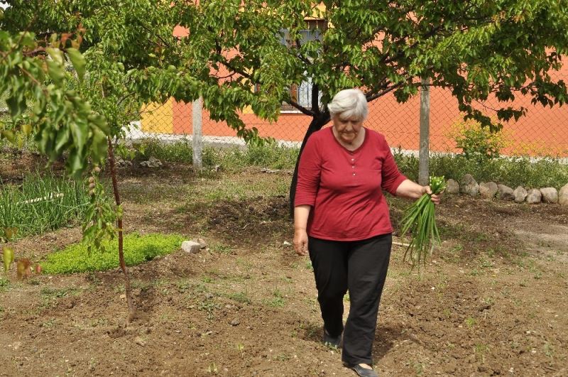 Sokağa çıkmayan yaşlı kadın doğal sebze yetiştirerek gününü geçiriyor
