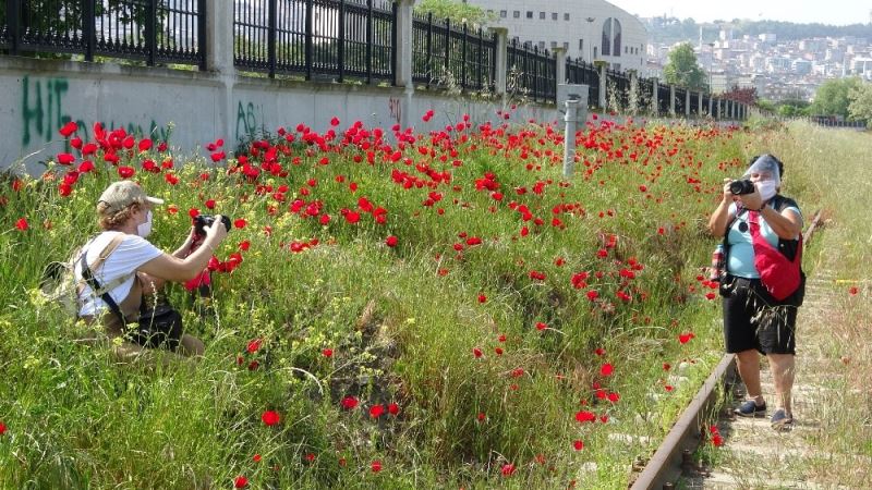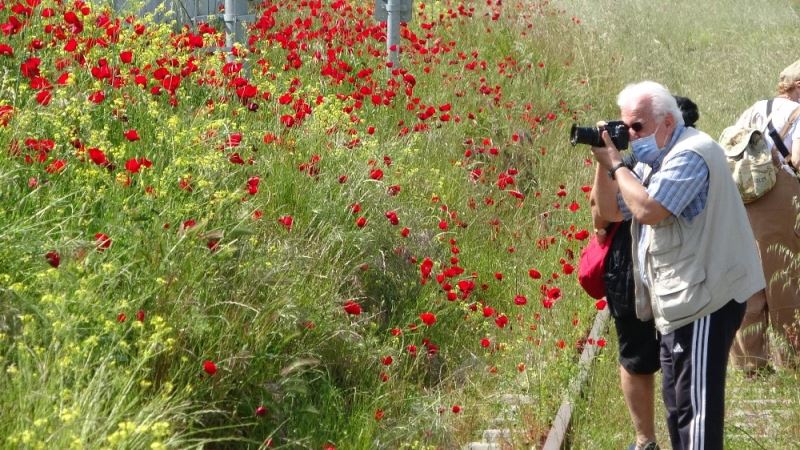 Sokağa çıkmayı fırsat bilip gelinciklerin resimlerini çektiler