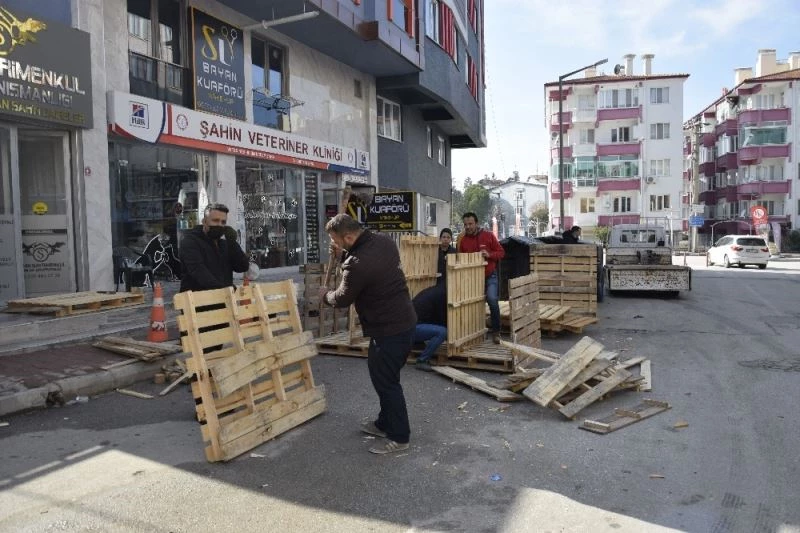Sokak hayvanları için atık tahta paletlerini sıcak yuvaya dönüştürdüler