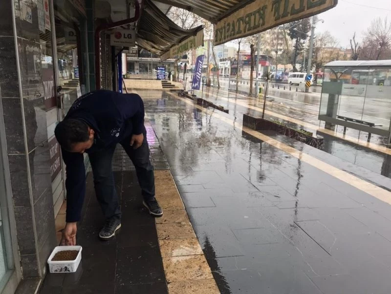 Sokağa çıkma kısıtlamasının yanı sıra aşırı yağışlardan dolayı da aç kalan sokak hayvanları için şehir merkezindeki birçok noktaya mama ile su bırakan Adıyaman Belediyesi Veteriner Müdürlüğü Ekipleri, kuşlar içinde belirli alanlara yem bırakmaya devam ediyor.