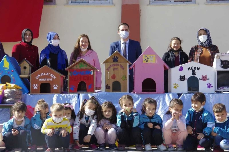 Kütahya 80.Yıl Özel İdare İlkokulu’nun anasınıfı öğrencileri, sokak hayvanları için yuva yaptı.