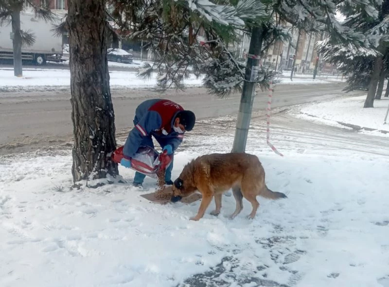 Tepebaşı Belediyesi soğuk hava ve kar yağışından dolayı yiyecek bulmakta zorlanan sokak hayvanlarını unutmuyor.