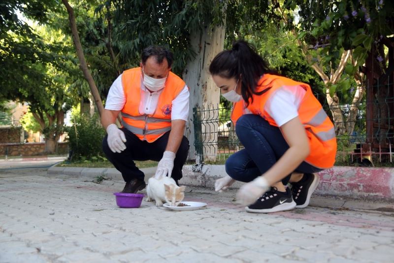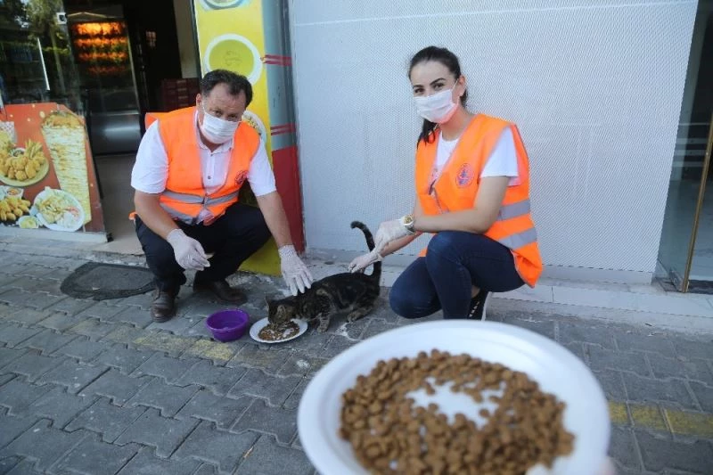 Ekipler ilçedeki parklara, cadde ve sokak aralarına kediler için su ve mama bıraktı. Görevliler bazı kedileri elleriyle besledi.