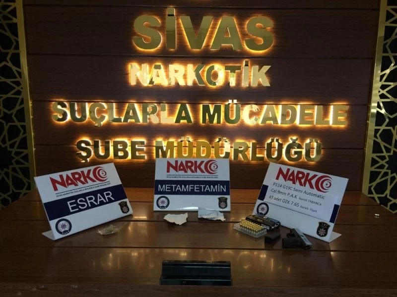 Sivas’ta Narkotik Suçlarla Mücadele Şube Müdürlüğü tarafından, il genelinde sokak satıcıları ve kullanıcılarına yönelik operasyon yapıldı. Son 1 hafta içerisinde yapılan operasyonlarda 147 adet Sentetik Ecza hap,17,20gram Metamfetamin maddesi,9,69 gram Esrar maddesi,1 adet tabanca ve 43 adet fişek ele geçirildi. Yapılan operasyonlarda 19 şüpheli şahıs yakalandı. 15 şahıs hakkında TCK 191. madde (Kullanmak İçin Uyuşturucu ve Uyarıcı Madde Satın Almak, Kabul Etmek veya Bulundurmak) kapsamında işlem yapıldı. 2 şahıs, hakkında TCK 188. madde (Uyuşturucu veya Uyarıcı Madde İmal ve Ticareti) kapsamında işlem yapılmış olup, 1 şahısta çıkarıldığı adli mercilerce tutuklandı.1 şahıs hakkında ise 6136 SKM suçundan işlem yapılmak üzere Polis Merkezi Amirliğine teslim edilmiştir.Öte yandan, 1 şahıs, hakkında 42/11 maddesince “Ehliyetsiz Araç Kullanmak” suçundan ve araç sahibine de 42/11 maddesince “Ehliyetsiz Kişiye Araç Kullandırmak” suçundan toplam 2.456TL idari para cezası uygulandı.