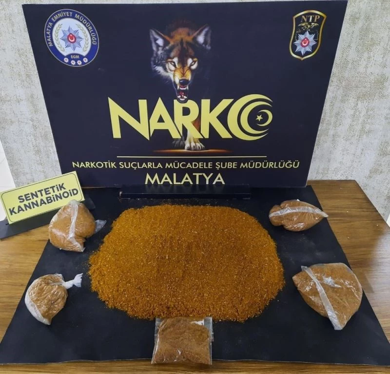 Yapılan çalışmada, 950 gram sentetik kannabinoid maddesi ele geçirildi.