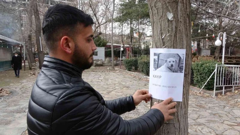 Elazığ’da bir vatandaş, kaybolan köpeğini sokak sokak gezip arıyor. Duvarlara afişler yapıştıran şahıs, köpeğini buluna ödül de verecek.