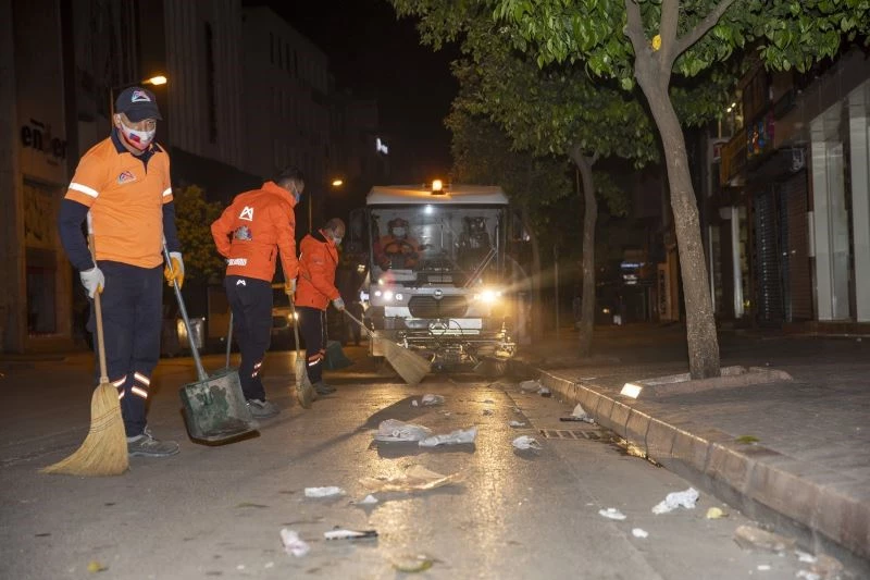 Sokaklar boşalıyor, Mersin Büyükşehir Belediyesi ekipleri gece-gündüz temizlik yapıyor