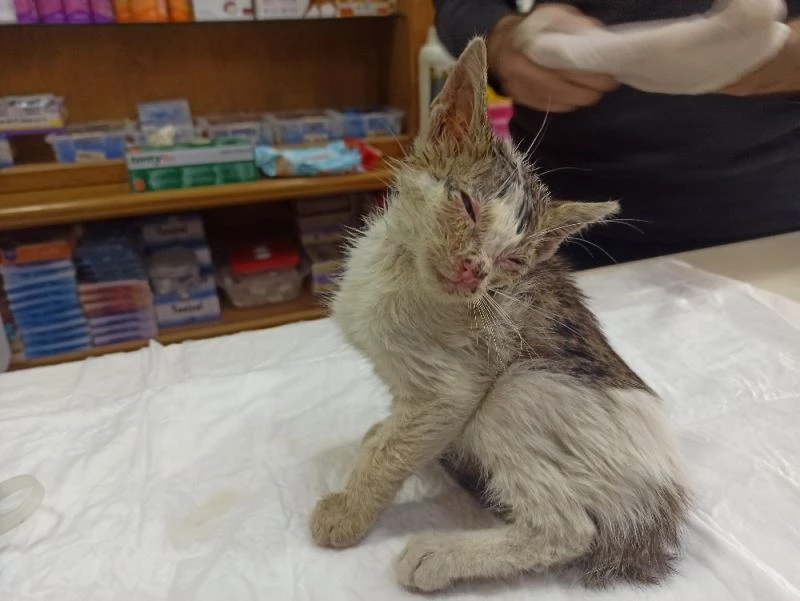 Samsun’un Bafra ilçesinde gözleri iltihaplanmış yavru kedi, veterinerde tedavi ettirilerek koruma altına alındı.