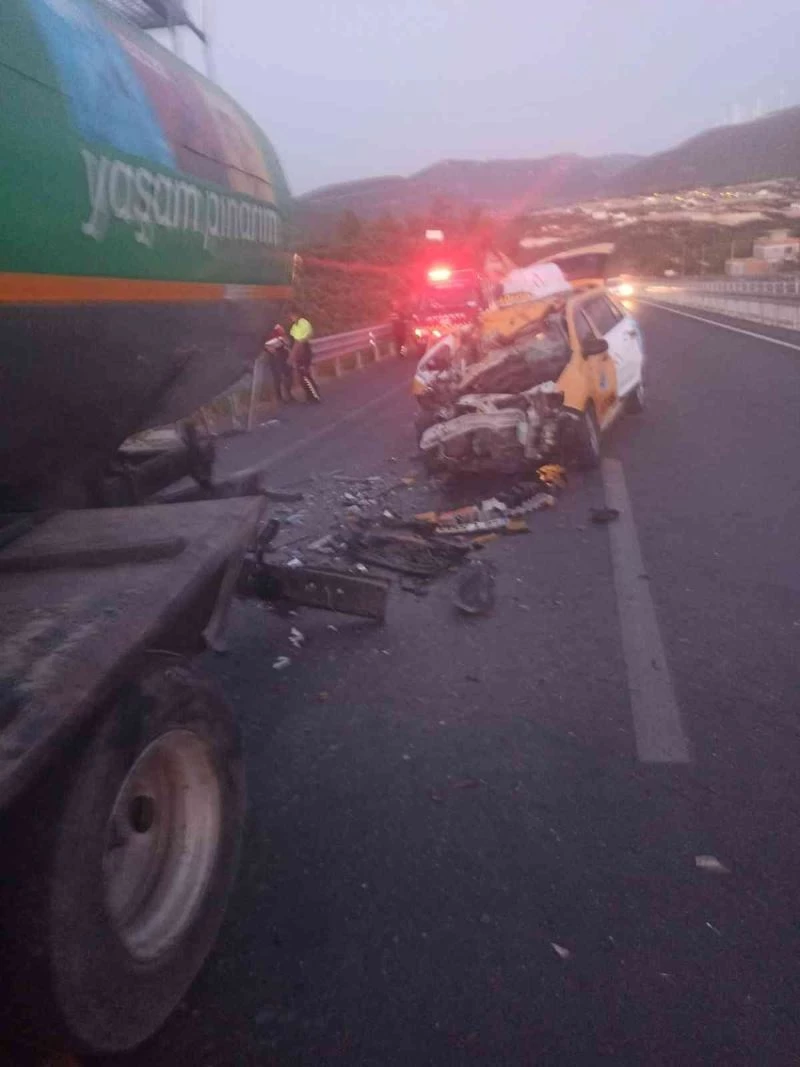 Kaza, Söke- Milas Karayolu Didim Kavşağı bölgesinde meydana geldi. Edinilen bilgiye göre, Söke- Milas Karayolu üzerinde seyreden E.G. (52) yönetimindeki 48 T 5513 plakalı ticari taksi, aynı güzergahta seyir halinde olan N.T.(49) yönetimindeki 07 AGB 107 plakalı kamyona arkadan çarptı. Didim Kavşağı’na yakın bölgede meydana kazada ticari taksi kullanılamaz hale gelirken araç sürücü E.G. ile araçta yolcu olarak bulunan Ü.Ş. (32) yaralı olarak hastaneye kaldırıldı. Kazayı görenler durumu Sağlık ekiplerine ve Jandarmaya haber verdi. Ambulanslarla Didim Devlet Hastanesi’ne kaldırılan yaralıların hayati tehlikesi olmadığı öğrenilirken, Jandarma ekipleri kazayla ilgili inceleme başlattı.