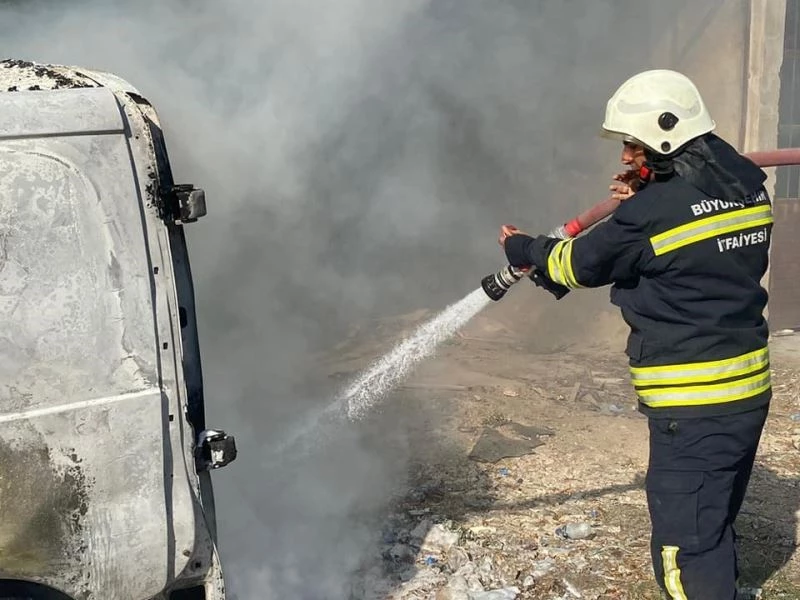Aydın’ın Söke ilçesi sanayi sitesinde bir araç alev alev yandı.