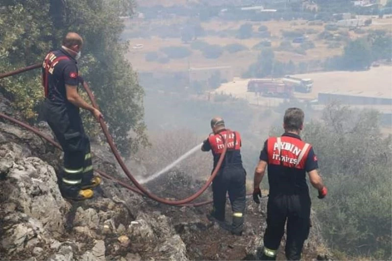 Aydın’ın Söke ilçesinde makilik alanda çıkan yangını söndürme çalışmaları devam ediyor.