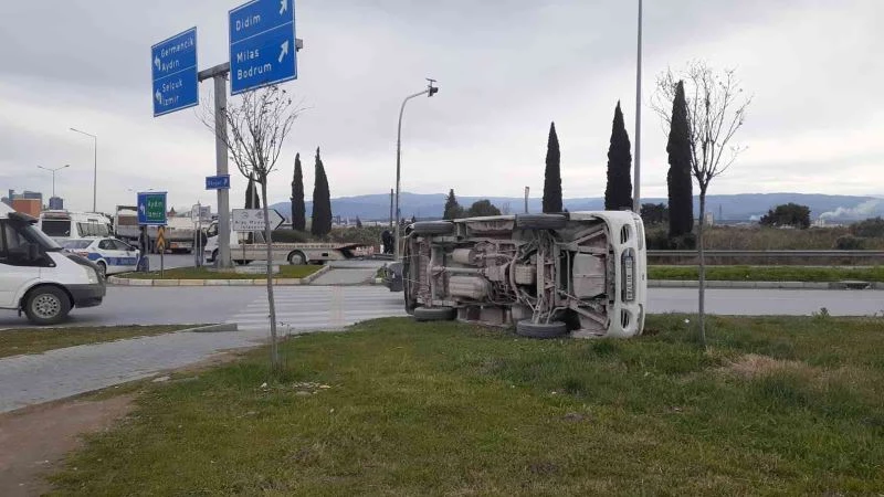 Aydın’ın Söke ilçesinde meydana gelen kazada otomobilin çarptığı transit takla attı.