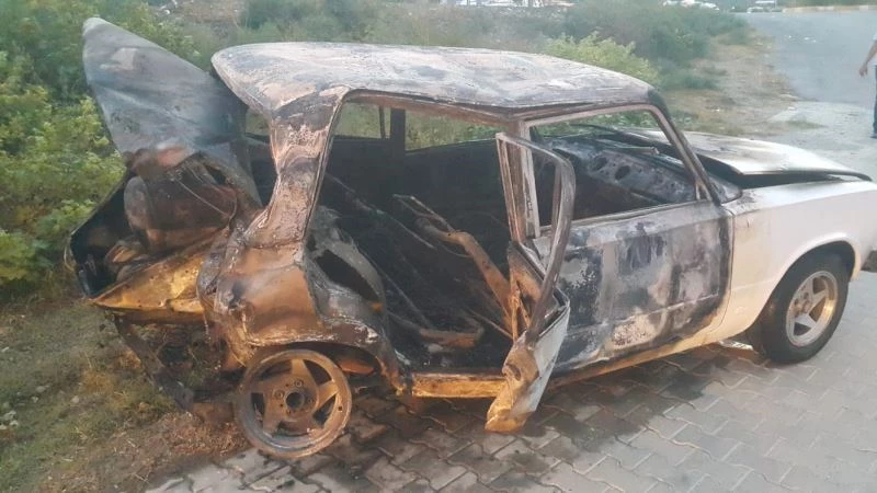 Söke’de üç aracın karıştığı kazada, bir otomobil alevlere teslim oldu