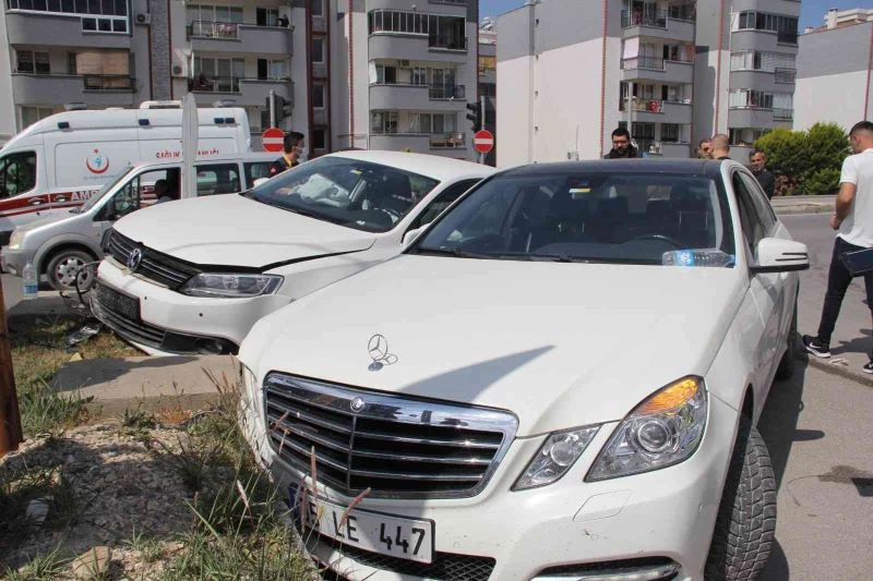 Aydın’ın Söke ilçesinde iki otomobilin çarpışması sonucu meydana gelen trafik kazasında otomobiller refüje çıktı.
