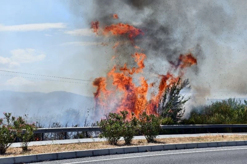 Türkiye’nin en yoğun trafik akışına sahip kara yollarından biri olan Söke-Milas kara yolu kenarında sazlık alanda çıkan yangın sürücülere zor anlar yaşattı.