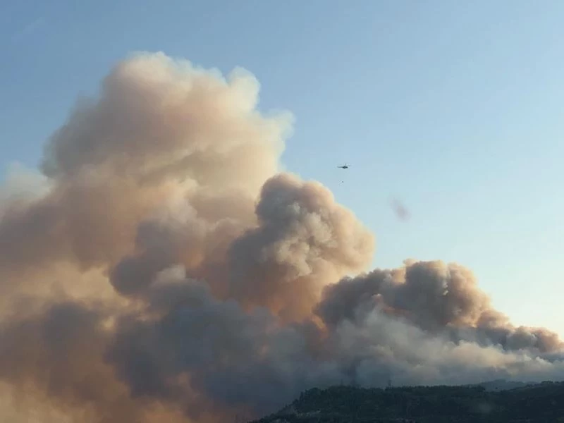 Aydın’ın Söke ilçesindeki ormanlık alanda çıkan yangın rüzgarın etkisi ile büyüyerek geniş bir alana yayılırken, ekiplerin karadan ve havadan müdahalesi sürüyor.