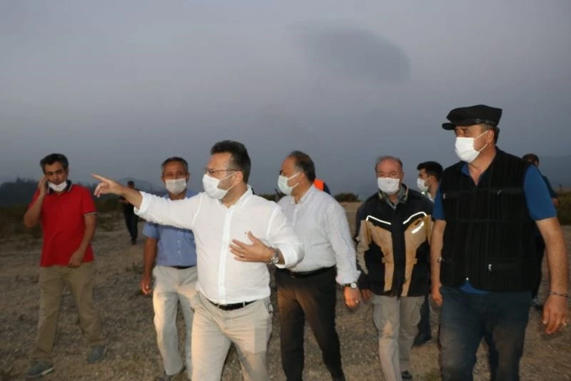 Söke’nin Akçakonak Mahallesi’nde saat 15.50’de başlayan ve rüzgarın etkisiyle ormanlık alana sıçrayan yangını söndürme çalışmalarını devam ediyor. Aydın Valisi Hüseyin Aksoy, yangının devam ettiği bölgelerde inceleme yaptı. Söke Kaymakamı Soner Zeybek ve AK Parti Milletvekili ve MKYK üyesi Metin Yavuz ile birlikte Akçakonak ve çevresinde incelemeler yapan Vali Aksoy, Orman Bölge Müdürlüğü yetkililerinden bilgi aldı. Aydın Valisi Hüseyin Aksoy, ayrıca Söke’nin Ovacık Yaylası’na da giderek yangından zarar gören ve kovanları yanan arıcılarla görüştü. Türkiye Tarım Hayvancılık ve Arıcılık Dayanışma Platformu Genel Başkanı Mustafa Sarıoğlu Vali Aksoy’a yangınla ve gördükleri zararla ilgili bilgi verdi.