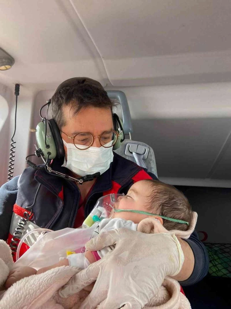 Solunum sıkıntısı çeken 6 aylık bebek ambulans helikopterle hastaneye sevk edildi