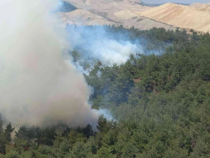 Manisa’nın Soma ilçesinde başlayan orman yangınına havadan ve karadan müdahale ediliyor.