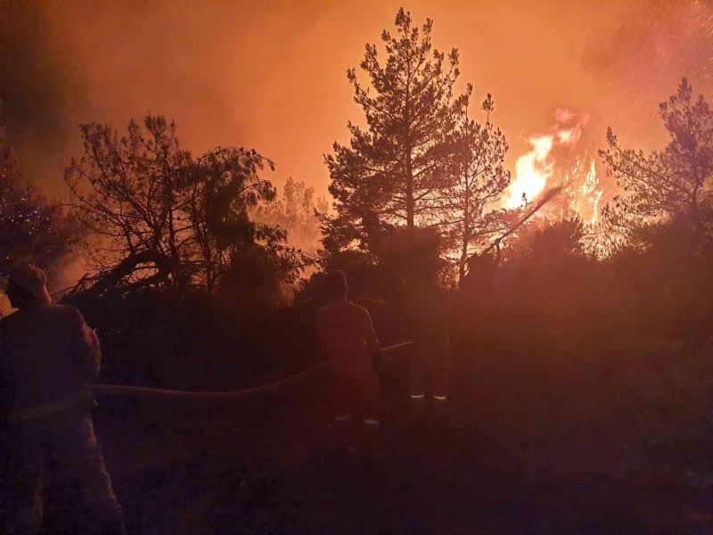 Gece itibariyle karadan yürütülen mücadeleye 2 gece helikopteri de destek verdi.