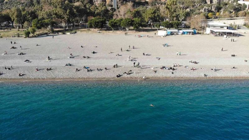 Son yılların en sıcak Ocak ayında vatandaşlar Konyaaltı sahiline akın etti