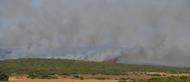 Söndürme çalışmalarının devam ettiği yangında 100 hektarlık makilik alan zarar gördü
