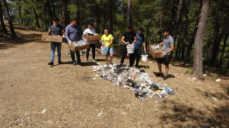 Sosyal medya aracılığıyla buluşan gençler ormandaki çöpleri temizledi