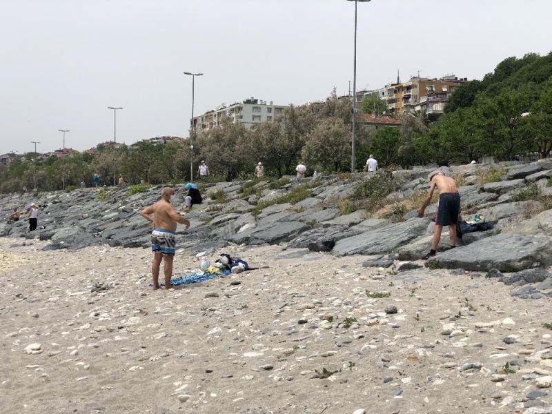 Sosyal mesafeli güneşlendiler, yasağa rağmen denize girdiler