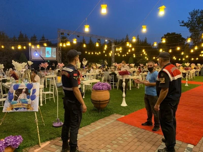 Bursa’da, düğün, nişan, kına gecesi ve sünnet düğünü yapılan mekanları jandarma ekipleri denetledi.