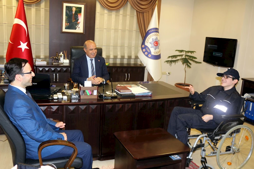 Osmaniye`de ailesi ile birlikte yaşayan 16 yaşındaki Serebral Palsi (SP) hastası 16 yaşındaki Talha Tozluklu`nun en büyük hayali olan, polis üniforması giyip, ekip arabasıyla devriyeye atma hayali gerçekleştirildi. Osmaniye İl Emniyet Müdürlüğü Toplum Destekli Polislik Şube Müdürlüğü ekipleri tarafından babası ve kardeşiyle birlikte 7 Ocak Mahallesi`ndeki evinden alınan Tozluklu, kısa bir gezinin ardından ilk olarak Özel Harekat Şube Müdürlüğünü ziyaret etti. Beyin hasarı sonucu ortaya çıkan, ilerleyici olmayan ancak yaşla birlikte değişebilen, hareketi kısıtlayıcı, postür ve hareket bozukluğu rahatsızlığı olan SP hastası genç, Özel Harekat Polisleri tarafından "Baş komiserim hoş geldiniz" denilerek karşılandı. Emniyetin kullandığı araçları yakından tanıyan Talha Tozluklu`nun en çok zırhlı ve TOMA araçlarının dikkatini çektiği gözlendi. Zeytin Dalı Harekâtına katılan güvenlik güçlerine başarılar dileyen Tozluklu, onlar için dua ettiğini ifade etti. Özel Harekat Polisleri ile bir süre sohbet eden Tozluklu, ardından Mobil Elektronik Sistem Entegrasyonu (MOBESE) merkezine geçti. Burada kameralara yansıyan görüntüleri izleyen ve merkezin çalışmaları hakkında bilgi alan genç, araçların nasıl takip edildiğini de öğrendi. Talha Tozluklu`ya, Yediocak İlkokulu önündeki MOBESE noktasından evlerinin bulunduğu cadde ve mahalle esnafı izlettirildi. Daha sonra ise İl Emniyet Müdürü Nurettin Gökduman`ı makamında ziyaret eden Talha, en büyük hayalini gerçekleştirdiği için Gökduman`a teşekkür etti. Müdür Gökduman, çeşitli hediyeler verdiği Tzoluk`luyu istediği zaman emniyete gelebilip ağabeyleri ve ablaları ile gezebileceğini ifade etti.