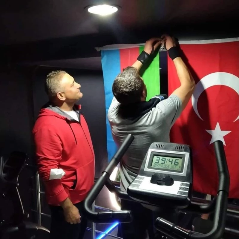 Azerbaycan’ın Ermenistan’a karşı sürdürdüğü haklı mücadelesi sürerken, Malatya’da da Vucüt Geliştirme Milli Takım Antrenörü Mehmet Baldiş, spor salonunu Azerbaycan Bayrakları ile donatarak destek verdi.