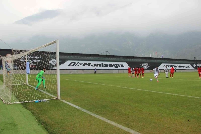 62. dakikada Manisa FK atağında savunmanın arkasına iyi sarkarak topu önüne alan Tabekou, ceza sahası içerisinde kaleci Hüseyin’in müdahalesiyle yerde kalınca hakem Volkan Bayarslan penaltı kararı verdi.