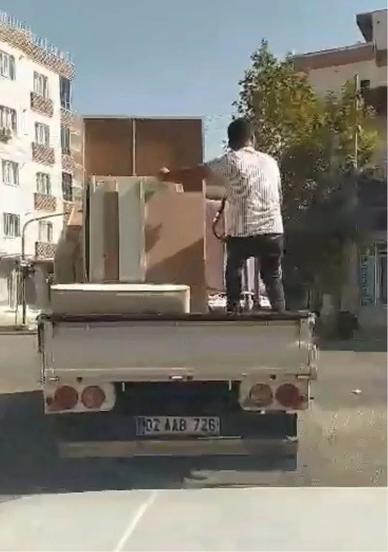 Kamyonet üzerinde ortaya çıkan bu ilginç görüntü başka sürücüler tarafından kaydedildi. Ev eşyalarının yüklü olduğu kamyonet bir süre sonra gözlerden uzaklaştı.