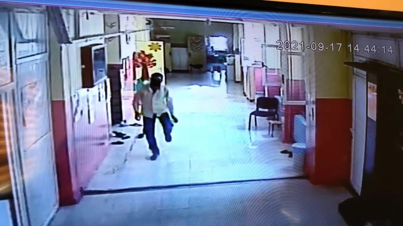Şanlıurfa’da cep telefonu çalınan bayan stajyer öğrencinin hırsızı okulun içerisinde kovalaması güvenlik kamerasına yansıdı.
