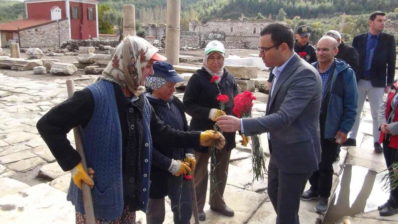 Yatağan Aile ve Sosyal Hizmetler İlçe Müdürlüğü tarafından düzenlenen etkinlikte kazı çalışanlarının yüzde 80’i kadınlardan oluşan Stratonikeia Antik kentindeki kadınlara kaz alanında Yatağan Kaymakamı. Belediye Başkanı, Aile ve Sosyal Hizmetler İl Müdürü ve Stratonikeia ve Lagina antik kenti Başkanı Prof. Dr. Bilal Söğüt tarafından karanfil verildi.