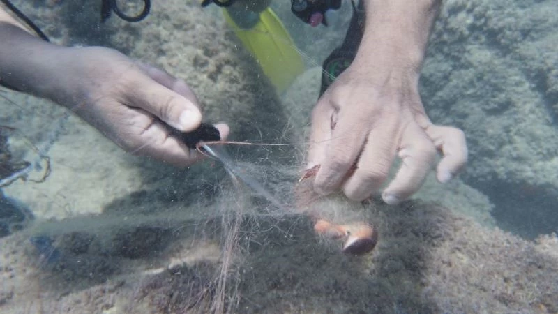 Su altındaki bir ağa iki tane gül yengecinin dolandığını gördüklerini anlatan Gökoğlu, “Gül kırmızısı rengi olan bir canlıdır. Ağa dolanmışlar. Yengeçleri kurtardık ve doğal ortamına bıraktık. Kıl gibi bir ağ, yengeçlerin ayakların dolanmış uzun uğraş sonucu kurtardık. Yengeçlerden birinin ayakları kopmuştu, onu da karada kurtardık. Bu tür av araçlarının kullanılması yasak. Bu ağ su altında kaldığı sürece başka canlıları yakalamaya devam edecek. Katil ağların satışlarının yasaklanması gerekir” diye konuştu.