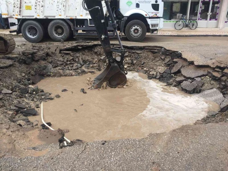 Adana’da yol ortasında su borusu patlayınca oluşan dev çukura bir motosiklet ile dolmuş düştü.