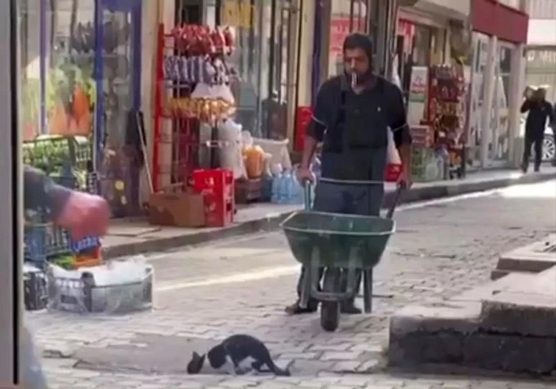 Tatvan’da el arabasıyla sokaktan geçen bir genç, yolda oluşan çukurda su içen kediyi görünce dakikalarca bekledi. Vatandaşların cep telefonu kamerasına yansıyan görüntüler büyük takdir topladı. Gencin örnek davranışının yansıdığı görüntüler, sosyal medyada kısa sürede yüzlerce kişi tarafından paylaşıldı. Görüntülerde gencin kediyi rahatsız etmemek için el arabasıyla dakikalarca hareketsiz şekilde beklediği görülüyor. Kedinin suyunu içmesinden sonra gencin yoluna devam ettiği anlar da görüntülere yansıyor.