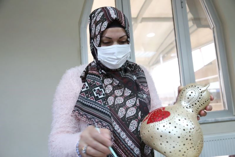 Geçmişte su taşımada kullanılan su kabakları, bu günlerde usta ellerde sanat eserine dönüşüyor. Kursa katılan vatandaşlar, küçük matkaplarla kabaklara şekil verirken, ortaya güzel eserler çıkıyor. Boyanan ve verniklenen su kabakları birbirinden güzel avize ve gece lambalarına dönüşüyor. Kursiyerlerin kimi evine süs eşyası yaparken, kimisi de satıp gelir elde ediyor ya da eşine dostuna kendi yaptığı ürünlerini hediye olarak gönderiyor.