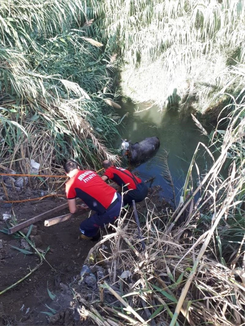 MERSİN - Mersin'in Tarsus ilçesinde su kanalına düşen at, itfaiye ekiplerinin çalışması sonucu çıkarılarak sahibine teslim edildi.
