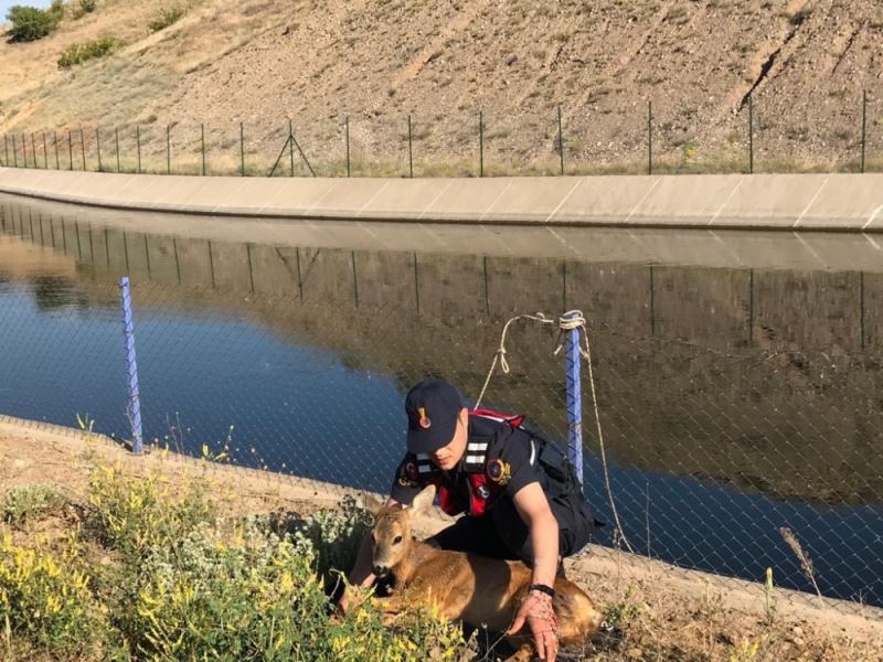 Edinilen bilgiye göre Berk Köyü yakınlarındaki Kızılırmak sulama kanalına düşen karaca akıntıya kapılarak sürüklenmeye başladı. Yapılan ihbar üzerine harekete geçen jandarma ekipleri suya attıkları ip yardımı ile karaca’yı boğulmaktan kurtardı. Su kanalından çıkartılan karaca kurulandıktan sonra yapılan kontrolde sağlık durumu iyi olduğu belirlenince doğaya salındı.