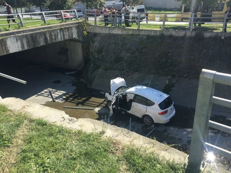 Kaza, Yeşilpınar Mahallesi Gaziosmanpaşa Caddesi’nde saat 09.00 sıralarında meydana geldi. Edinilen bilgiye göre, 21 yaşındaki Bekir Doğan 34 DAD 827 plakalı Seat Altea marka otomobiliyle viraja hızlı girerek direksiyon hakimiyetini kaybetti. Otomobiliyle bariyerleri aşan Doğan, su kanalını çevreleyen korkulukları da kırarak aşağı uçtu. Şans eseri 4 tekerleğin üstüne düşen araçtan burnu bile kanamadan kurtuldu.