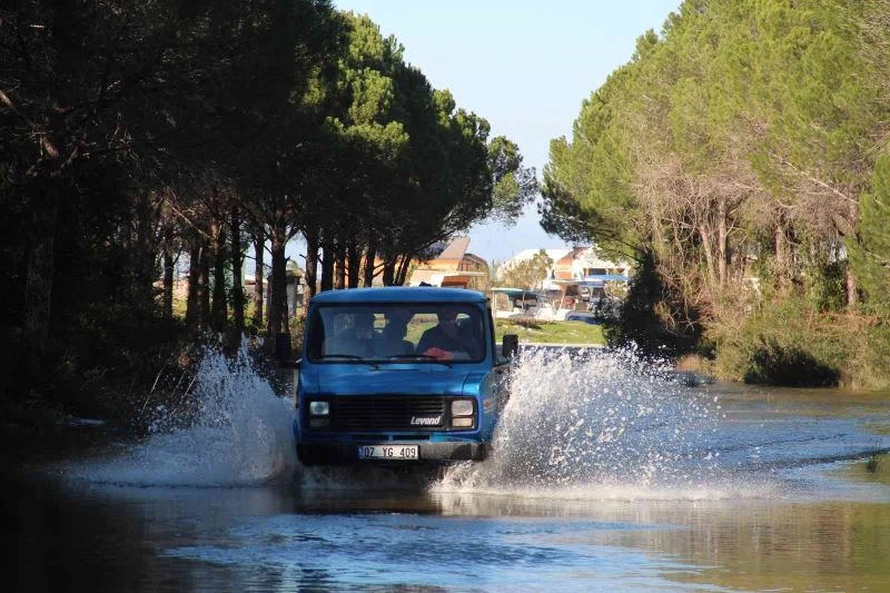 Turizm kenti Antalya’ya yağışların geç gelmesine rağmen, aralıksız yağan sağanak yağmurlar çiftçinin yüzünü güldürdü.Su debilerinin yükseldiği dere ve baraj göletlerinde deyim yerindeyse toprak suya doydu. Son yağışların ardından Aksu’nun Kumköy Sahiline inen yol ve kenarındaki arıklarda suyla doldu taştı. Fıstık çamları zemininin suyla kaplandığı bölgede, ulaşımı sağlayan yolun yaklaşık 300 metrelik bölümü de sular altında kaldı. Sahile geçmek isteyen ve balık tutmak isteyen vatandaşlar ise araçlarıyla sudan geçerken zorlandı. Motor kaputuna kadar yükselen su nedeniyle bazı araçlar suda kaldı. Sürücüler çalışmayan araçlarını iterek güvenli noktaya çıkardı. Su dolu yola girmeyi göze alamayan bazı sürücülerin ise geri dönüş yaptığı görüldü. Su kaplı yol ve sürücülerin zor anları havadan da görüntülendi.
