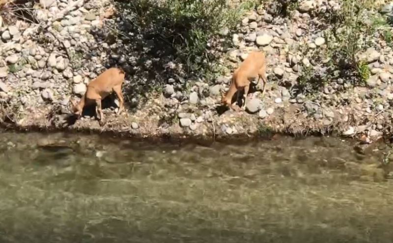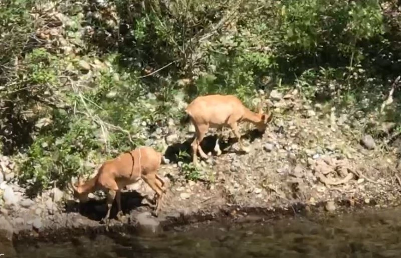 Tunceli’de koruma altında bulunan ve avlanması yasak olan iki dağ keçisi Pülümür Çayı kıyısına indi. Bölgeden geçen Yılmazcan Şare, dağ keçilerini fark ederek hem karınlarını doyuran hemde çaydan su içen dağ keçilerini cep telefonu kamerasıyla görüntüledi.Bir süre bölgede duran dağ keçileri daha sonra tekrar orman alana doğru giderek gözden kayboldu.