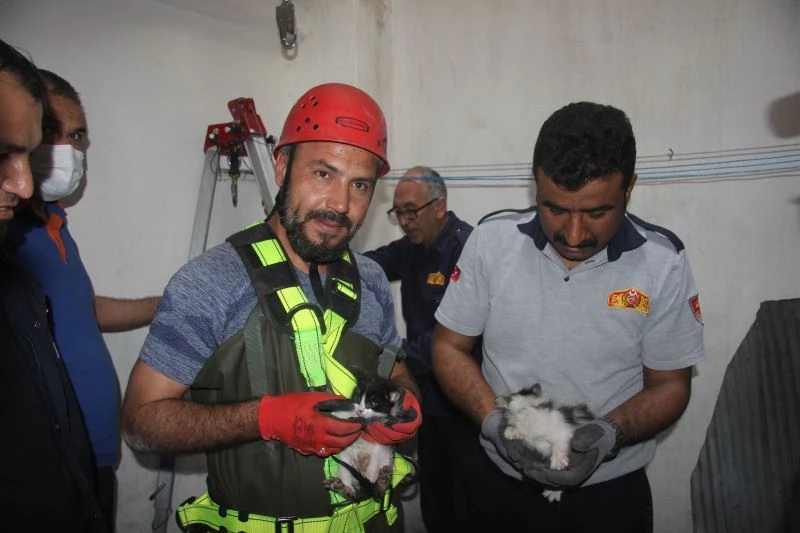Kilis’te bir evin su kuyusuna düşen 2 yavru kedi kurtarılarak anneleriyle buluşturuldu.