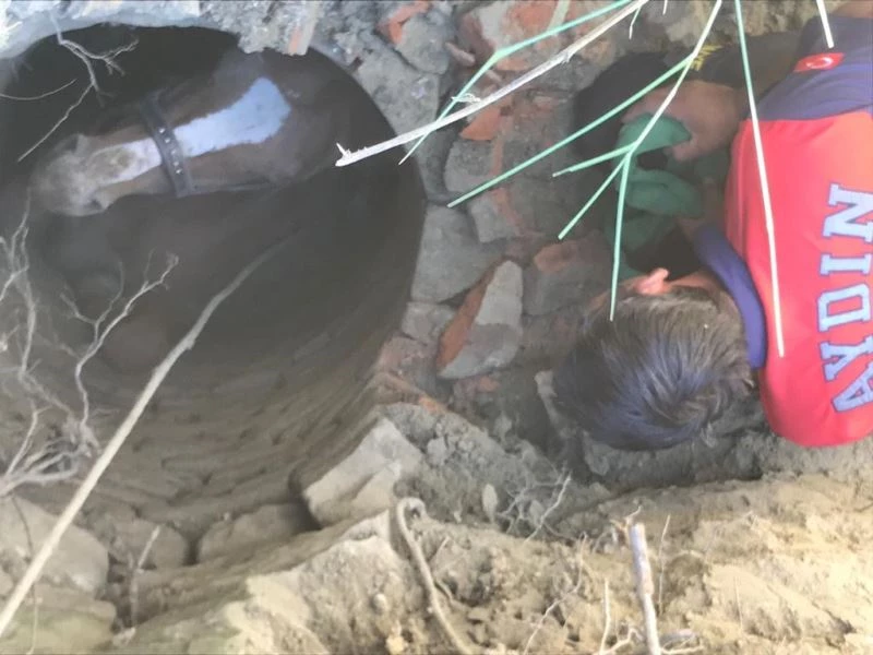Aydın’ın Germencik ilçesinde 5 metrelik su kuyusuna düşen at, itfaiye ekiplerinin çalışması ile kurtarıldı.